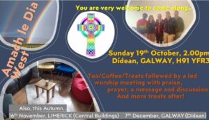 Amach le Dia West is meeting again on Sunday week, 19th October, at our new location for Galway: Dídean in Doughiska (H91 YFR3)