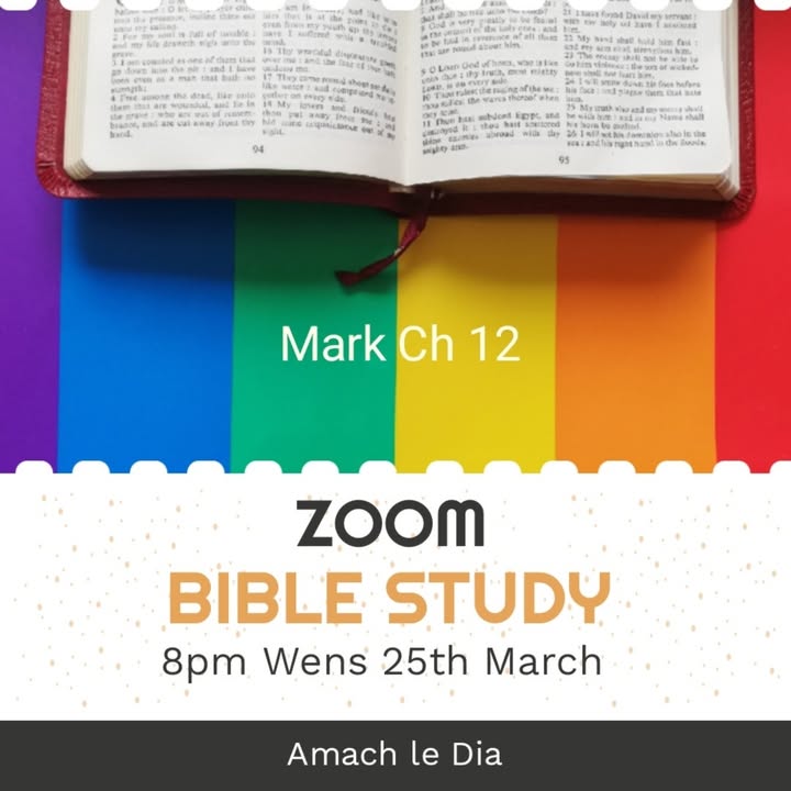 Our monthly online bible study will be 8pm Wednesday 25th March. We will continue our series in Mark looking at chapter twelve. Please message us or email us for our zoom code, amachledia@gmail.com. All welcome ☺️🏳️🌈🙏📖