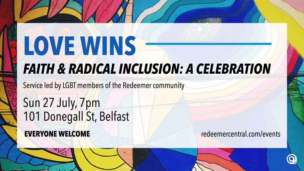 Pride Week service on tonight, Sunday, 7pm, in Redeemer Central, 101 Donegall St. Led by LGBTQ+ members of Redeemer. Everyone welcome : )