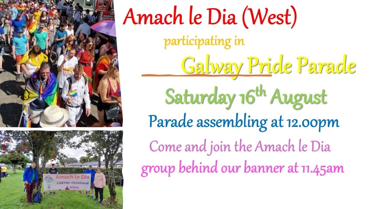 We will be participating on Saturday (16th) in Galway Pride Parade behind our banner. We start off at midday at City Hall. All welcome to parade with us.